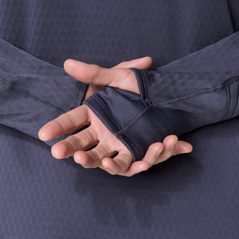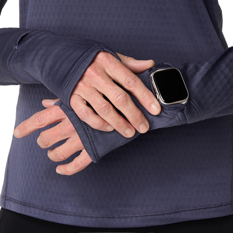 This top is designed with brushed knit to help you keep comfortable in varying temperatures. Favorite functions include the keyhole ventilation slits at back for increased airflow and a smartwatch window that allows you to check your data without disrupting your running flow.